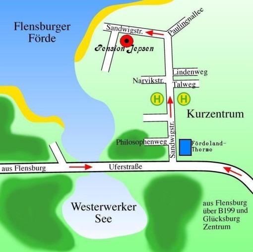 Sie bitte ins Kurzentrum (Richtung Fördelandtherme / Strand Sandwig).